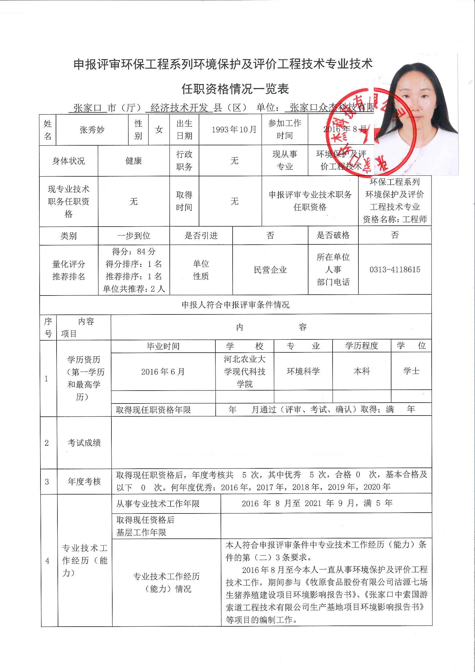 推薦張秀妙等同志評(píng)審工程師的公示